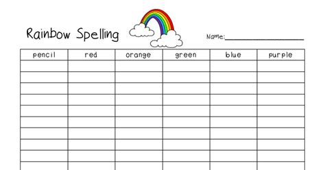 Rainbow Writing Spelling Words Template - Web rainbow write letters, words, numbers. If you like, you can read on to find out more. The students choose a word and write it in each color. Web this rainbow words worksheet is a fun way for students to practice their spelling words. Marker pens (red, orange, yellow, green, blue, purple) white paper;